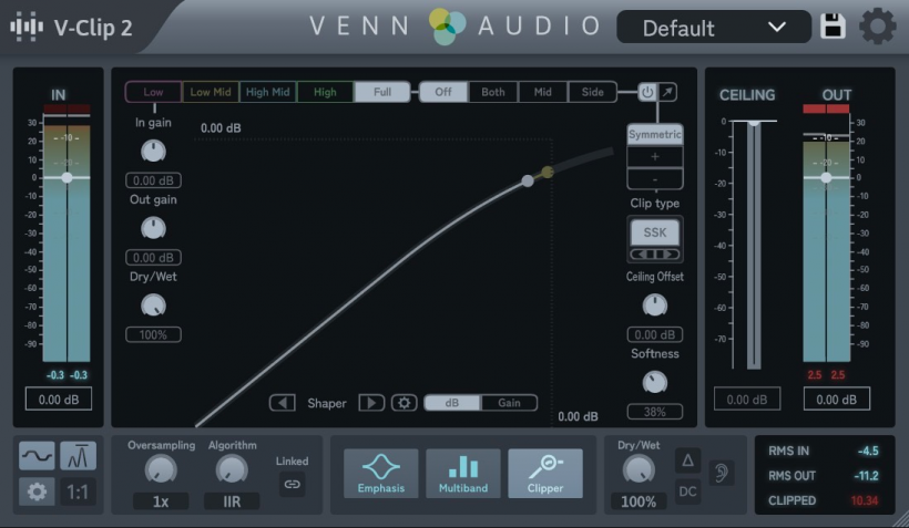 Venn Audio推出V-Clip的續(xù)作:V-Clip 2,該插件是一款功能全面的多頻段飽和效果器。