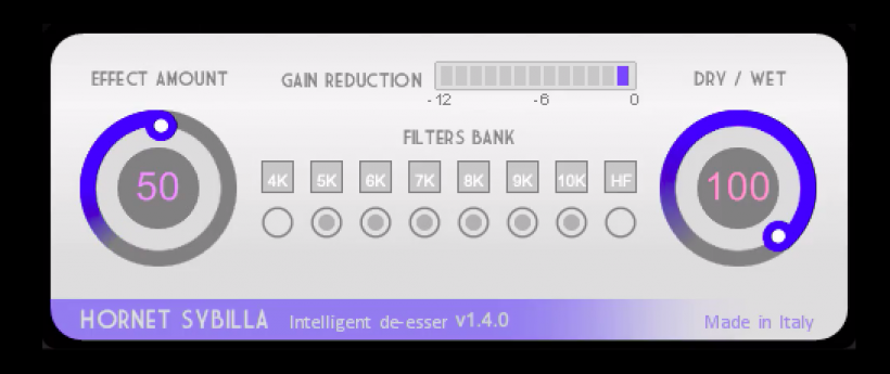 HoRNet Plugins推出了一款De-esser效果器:Sybilla,這款插件可以幫助用戶快速、實(shí)時(shí)地減少齒音。